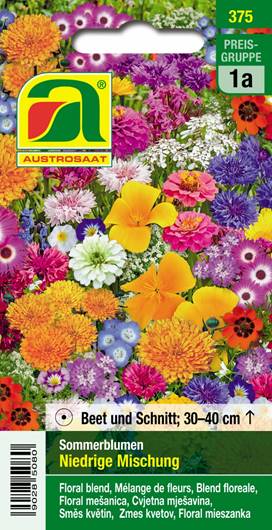 Diese Blühmischung enthält verschiedene niedrige Sommerblumen, die von Frühsommer bis in den Herbst hinein blühen.