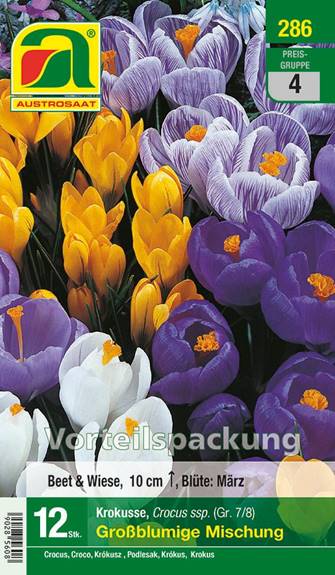 Sortenbeschreibung:Eine Mischung großblumiger Krokusse. Der Nektar ist beliebt bei Bienen und Hummeln und dient als erste Nahrung nach dem Winter.