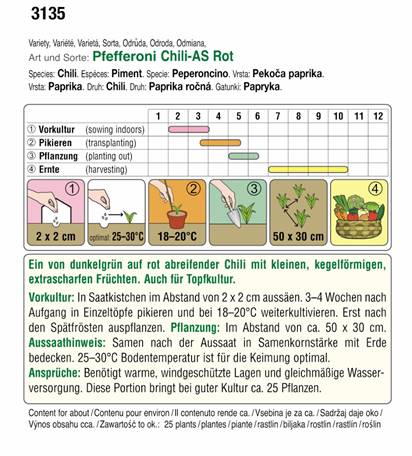 Die Früchte sind zuerst grün, reifen dann rot ab. Optimale Keimung bei 25-30°C Bodentemperatur.