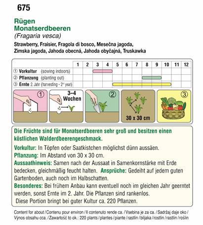 Eine blühfreudige Sorte mit köstlichem Walderdbeerengeschmack. Die Früchte sind für Monatserdbeeren sehr groß.