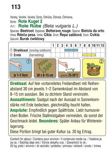 Eine gut durchgefärbte Sorte. Kulturdauer von der Keimung des Samens bis zur Ernte: ca. 140 Tage.
