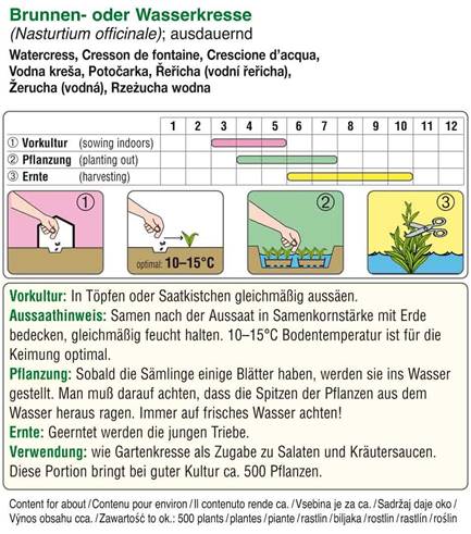 Sortenbeschreibung:Schmeckt ähnlich der Gartenkresse. Niedrigwachsend und ausdauernd.