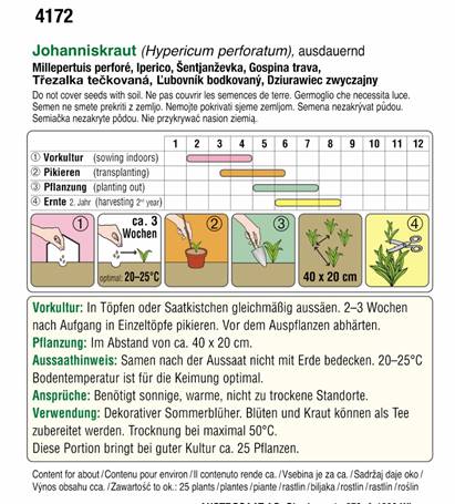 Die Trocknung soll bei max. 50°C erfolgen. Optimale Keimung bei 20-25°C Bodentemperatur. Lichtkeimer!